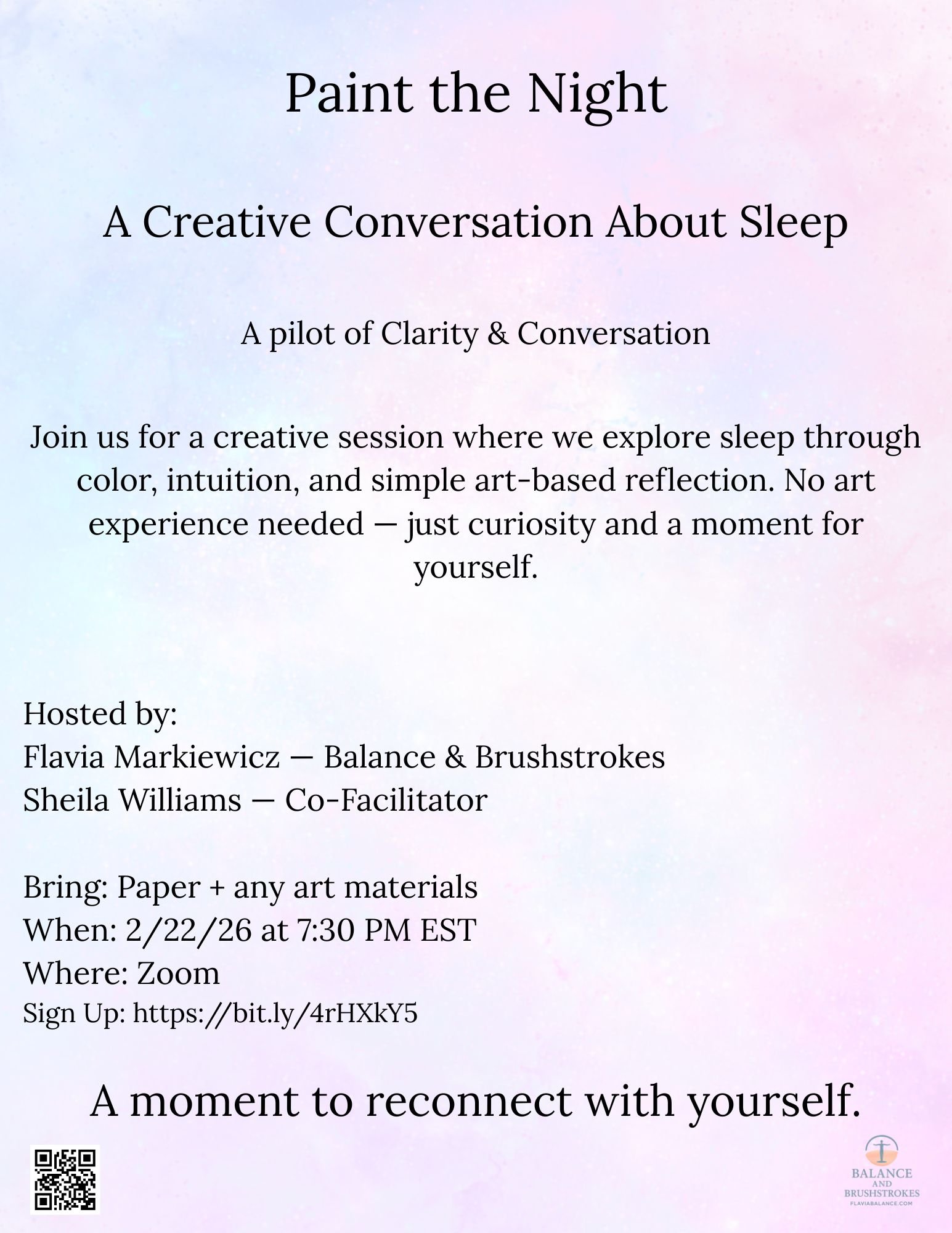 Join us for a creative session where we explore sleep through color, intuition, and simple art‑based reflection. No art experience needed — just curiosity and a moment for yourself.